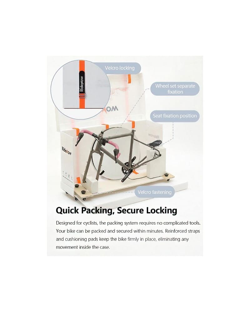 After you put the bike into the travel case, you can reinforce the case as a whole with straps, making the bike safer during transportation.