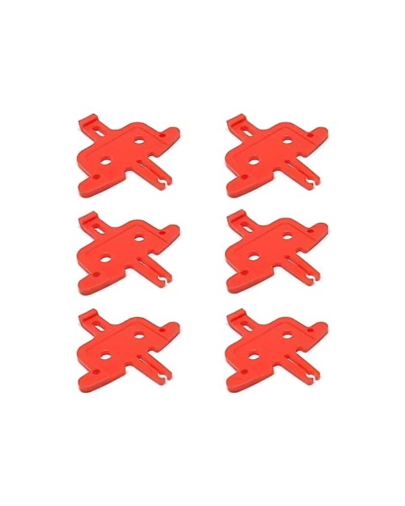 Inserting a disc brake pad spacer when removing wheels prevents the hydraulic brake pads from closing together if the lever is squeezed, which would otherwise lock the brakes and prevent reinstallation. It acts as a substitute for the rotor, maintaining the correct gap and protecting the pistons from damage.